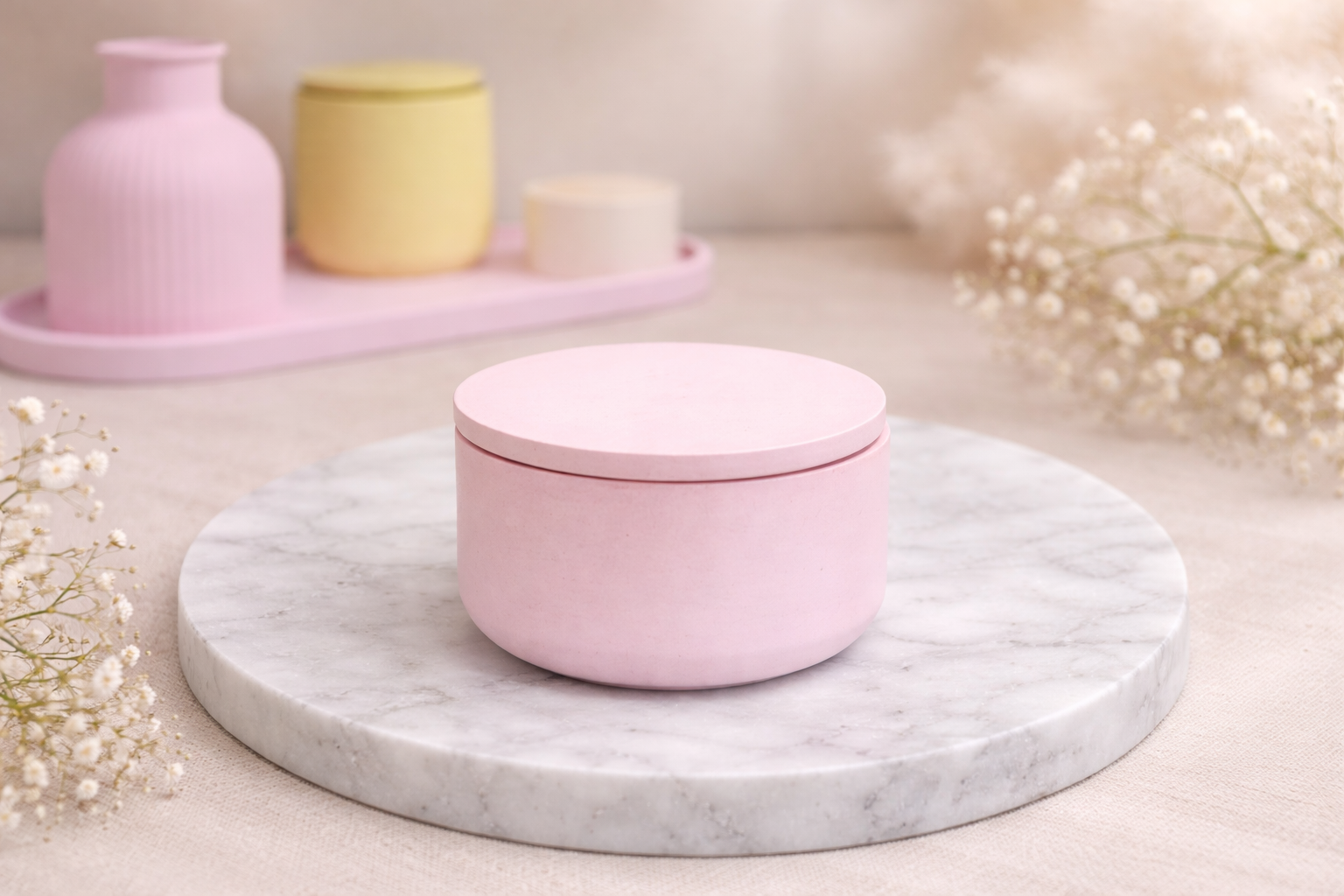 Porta-Oggetti Artigianale Rotondo con Coperchio in Acquaresin